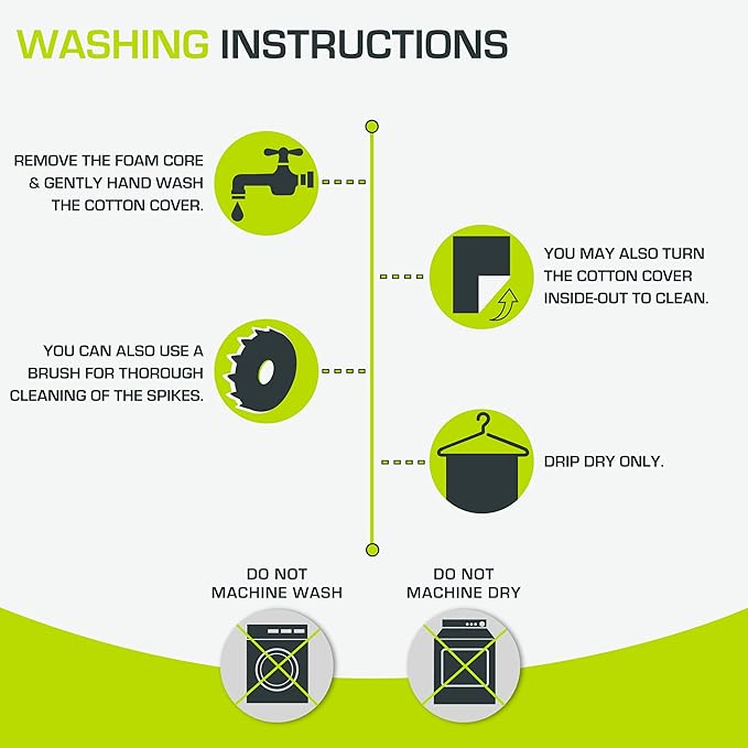 - Product Care Instructions : Store your Acupressure Mat and Pillow in a cool, dry place. To clean, remove the foam core and and gently hand wash the cotton cover. You may also turn the cotton cover inside-out to clean. Do not machine wash or dry, as this may damage the pressure point buttons. Drip dry only. Store your Acupressure Mat and Pillow in a cool, dry place. To clean, remove the foam core and and gently hand wash the cotton cover. You may also turn the cotton cover inside… See more
