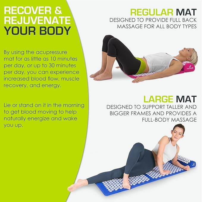 - PAIN REDUCTION: Naturally reduce muscle tension, back pain and headaches by laying on the mat daily for 10 to 30 minutes; Acupressure releases endorphins that block pain and relaxes muscles, massaging your back, neck, and feet
