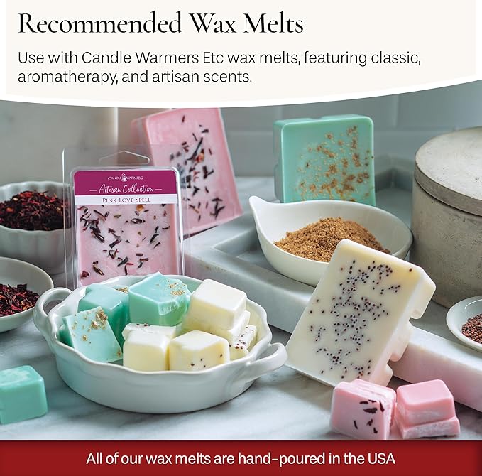 - RECOMMENDED WAX MELTS – Recommended use with our Candle Warmers Etc wax melts. Our fragrance melts feature classic scents, aromatherapy scents, and odor eliminating scents. We also have a line of artisan melts that are hand-decorated with organic materials. All of our wax is poured in the USA.