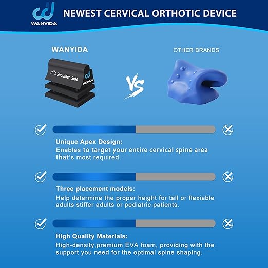 - [Most Effective Cervical Orthotics] Based on the data of cervical spine model derived from numerous patients. We've designed a pillow-like neck hump corrector, engineered with special curves, angles and apex. The Cervical Orthotic Device would relieve neck pain by gently stretching the neck muscles and cervical spine, increasing the flexibility of your neck and shoulders, and restoring the natural alignment of cervical spine curve (neck curve). Patent pending