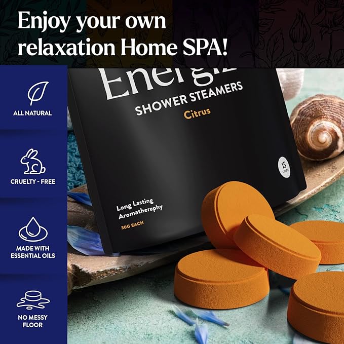 Miracle Made Citrus Mint Aromatherapy Shower Steamers – Essential Oil Shower Bombs for Relaxation, Nasal Relief & Daily Self-Care – 15 Shower Melt Tablets