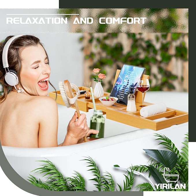 - LUXURY SPA FOR BATH: Bamboo bath tray for bathtub is equipped with a phone, wine, candle hole, 2 removable spa trays, and tablet/book holder, also includes a free soap holder. Treat yourself to the most relaxing bath experience ever and enjoy a home spa treatment in luxury