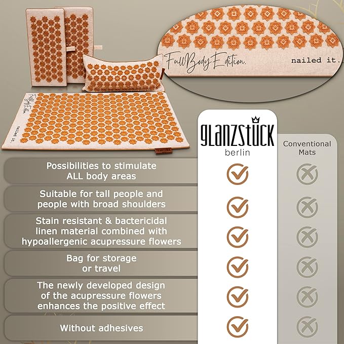 Glanzstück Berlin® Health Collection XXL Acupressure Mat Set for Full Body for Tension Headaches Back Pain Stress
