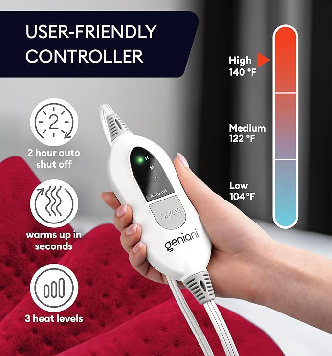 - šššššššššššš šššš šššš šššš šššš-šš š ššš ššš: Choose from three heat levels - low, medium, or high - to match your comfort needs. The built-in auto shut off heating pad feature turns off automatically after two hours, giving peace of mind through safe, worry-free use.