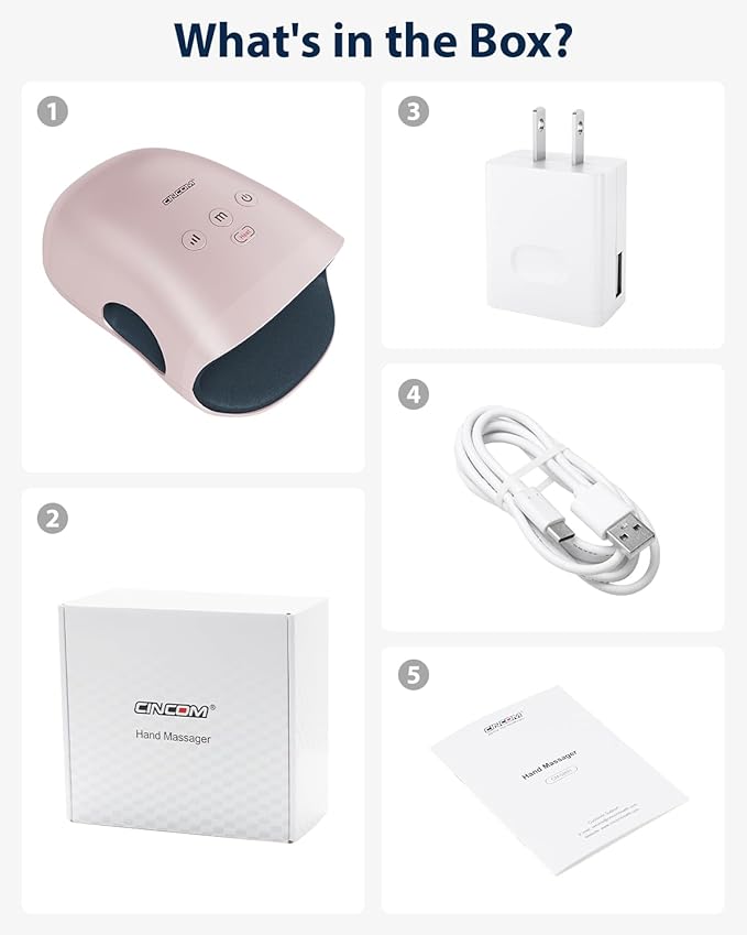 - All-Around Hand Massage Therapy: CINCOM hand massager delivers deep kneading with 4 massage heads and rhythmic air compression. Targets acupuncture points across fingers, palms, and wrists for full-hand relaxation and circulation support.
