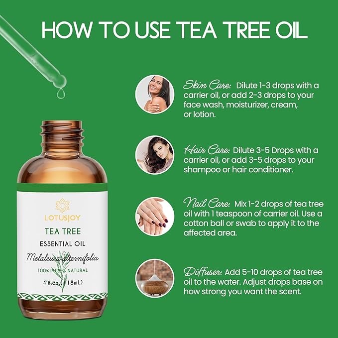 Tea Tree Oil for Skin, Hair, Nails, Shampoo, Body Wash, Foot Soak, Spray - 4 Oz Tea Tree Essential Oil with Roll On Bottle