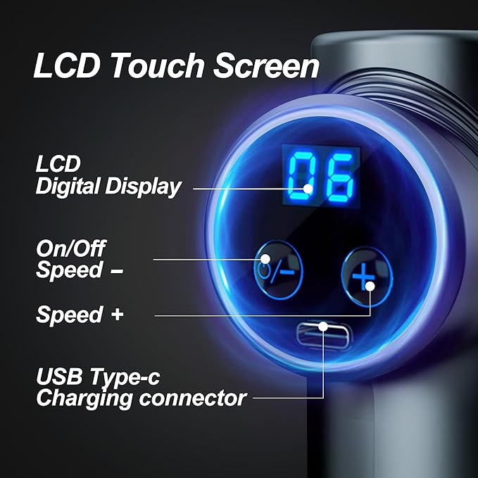 - massage gun has an intelligent pressure sensor device, designed for pain in different parts, and increases the output power and massage intensity in a short time without frequently adjusting the intensity through buttons. (This is not a quality issue, you need some time to master the skills)