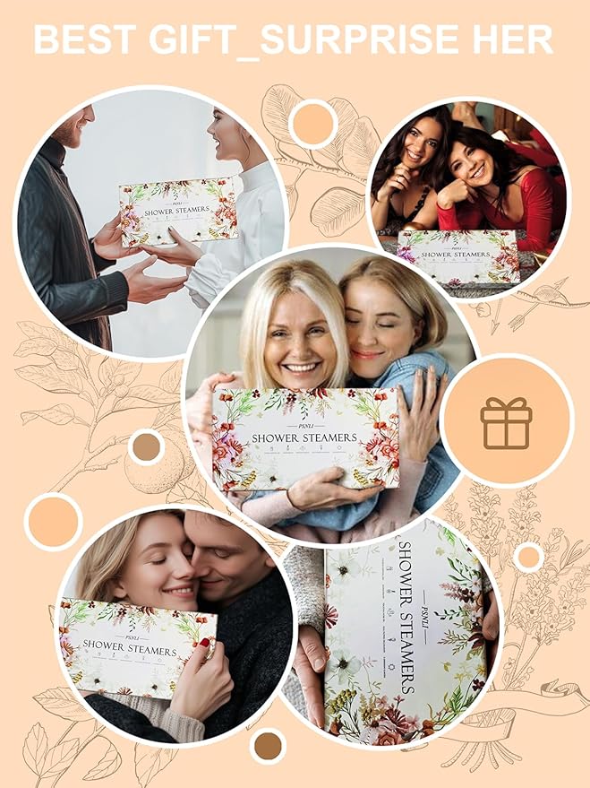 Shower Steamers Aromatherapy Stocking Stuffers 8 Scents, Christmas Gifts for Women Elegant Packaging Birthdays Gifts for Mom, Natural Essential Oil Home Spa Self Care & Relaxing