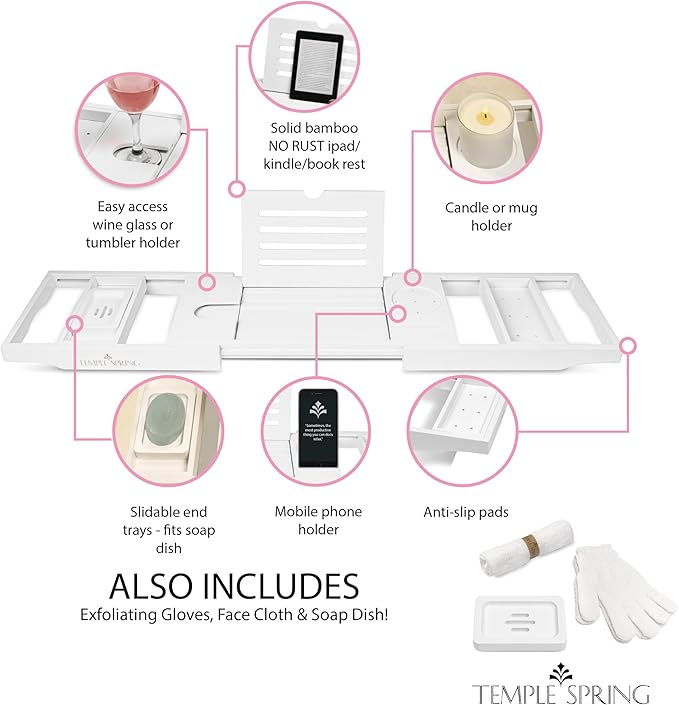 - 100% SATISFACTION GUARANTEE - We are confident you will love your Temple Spring bath tub tray, but if you're not completely satisfied, please get in touch. Experience the luxury and versatility of one of the finest bathtub trays for tub and enjoy the perfect combination of style and functionality.