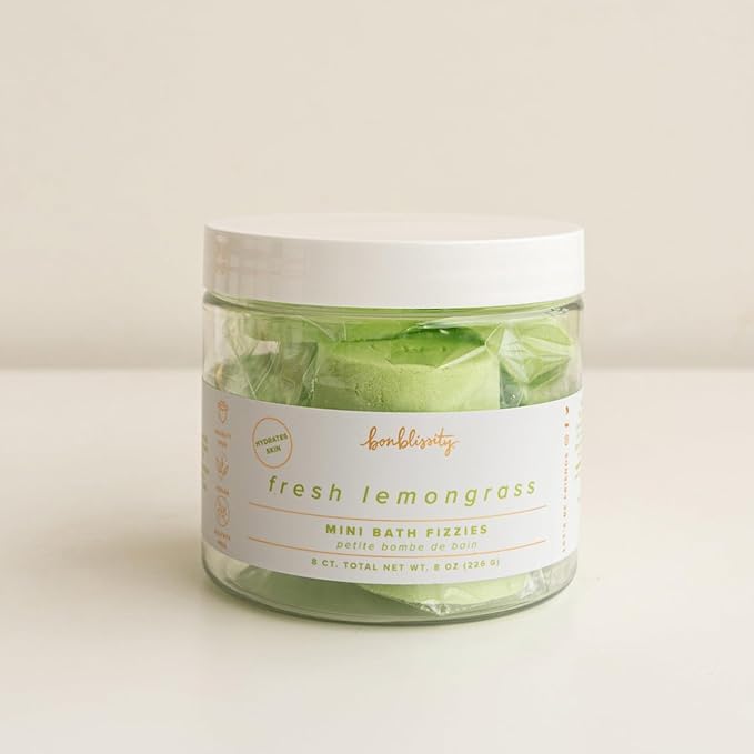 Bonblissity Mini Bath Bombs for Women, 8 pcs - Fresh Lemongrass Scented Fizzies, Multipurpose Moisturizing Bath Bomb, Shower Steamer, or Foot Soak, Home Aromatherapy with Hydrating Natural Oils