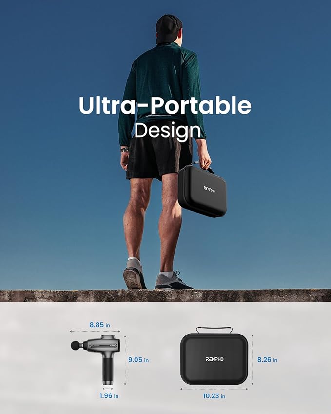 - Lightweight & Portable Case:The RENPHO Massage Gun comes with a convenient case for easy travel and storage of the massage gun and its accessories. Take it with you wherever you go.
