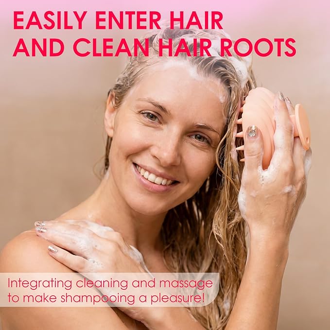 Detangling Silicone Scalp Scrubber Brush, for Wet or Dry Hair, Scalp Brush for Hair Growth and Dandruff Removal,Ergonomic Scalp Massager(Coral Color)