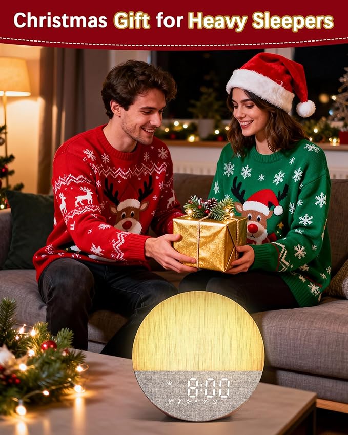 Sunrise Alarm Clock with Sound Machine: Gentle Gradual Wake Up Light for Heavy Sleepers Relieve Anxiety Dimmable Clock with Bluetooth Memory for Bedroom - White Noise Machine with 30 Sleep Sounds