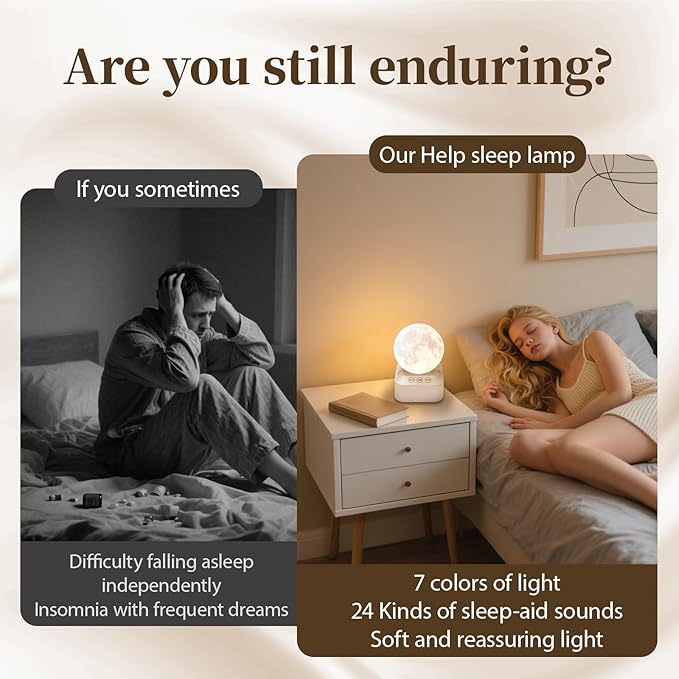 White Noise Sleep Machine with Moon Lamp Night Light,24 Soothing Sounds,Adjustable RGB Color Changing,Sleep Aid for Babies & Adults,Timer & Type-C Rechargeable,Reduces Stress & Improves Sleep Quality