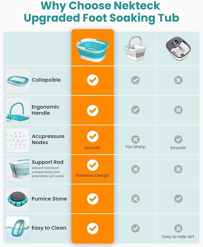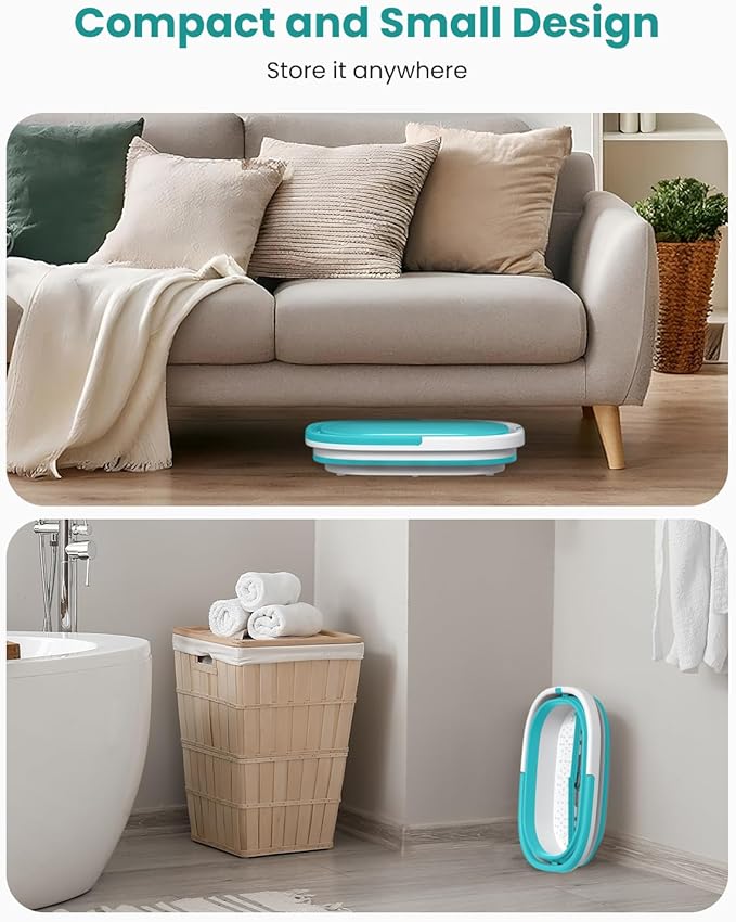 - Space-Saving Collapsible Design: This collapsible foot spa folds down to a slim 16.14 x 12.59 x 2.76 inches, fitting easily under beds, couches, or against walls. Perfect for saving space, this foot bath tub is always ready for a convenient foot soaking tub experience at home.