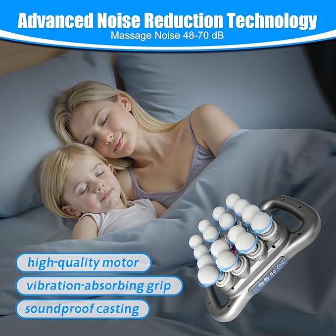 - Comprehensive Muscle Coverage – Equipped with 16 fixed massage heads, this massage gun deep tissue is designed to target multiple muscle groups, from back to legs, arms, and glutes, delivering thorough deep massage for whole-body recovery.