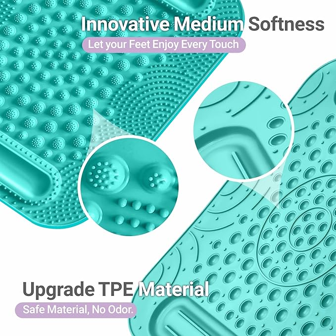 - 【Easy-to-carry & store】Two hook and loop fasteners included. The TPE massage mat is portable, easy to store, easy to clean, and no molding. It’s super durable to last for a long time. Package includes: foot massage mat x1, hook and loop fastener x2, foot Reflexology map x1.