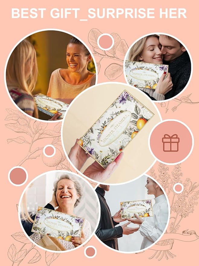 Shower Steamers Aromatherapy Stocking Stuffers 8 Scents, Christmas Gifts for Women Elegant Packaging Birthdays Gifts for Mom, Natural Essential Oil Home Spa Self Care & Relaxing Fruit