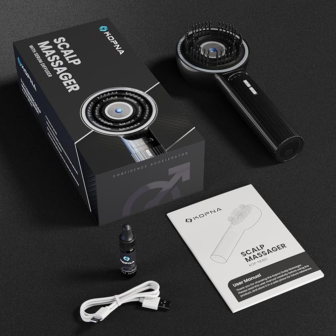 2-in-1 Electric Scalp Massager with Precision Serum Diffuser for Men – Cordless Scalp Care Brush, Supports Fuller-Looking Hair, IPX7 Waterproof, Built-in Nano Mist Diffuser