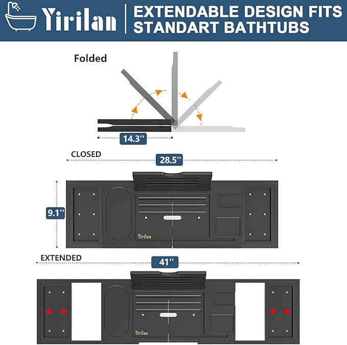 - SUITABLE FOR ALL THE BATHTUB TYPES: This bamboo bathtub tray is designed to expand from 28.5" to 41". And bath tub tray fits almost any bathtub size, you just need to manually adjust it to the right length and don't need any tools. Non-slip silicone keeps tub tray from sliding
