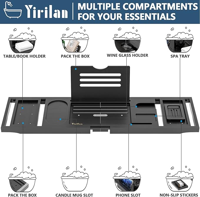 Yirilan Bamboo Bathtub Tray Caddy,Black