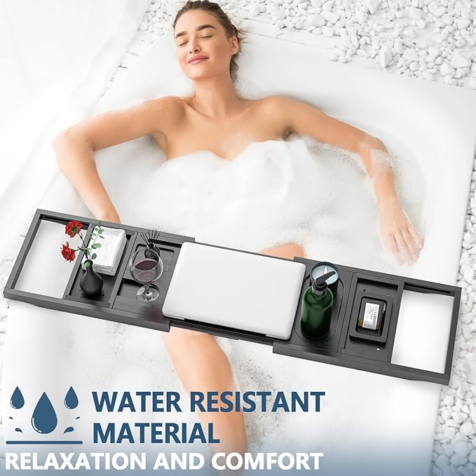 - WATERPROOF BATHROOM TRAY: Bathtub trays for tub expandable usage is made of sturdy and high-quality bamboo, and lacquered to provide a waterproof bath table for tub, it'll last you for up to years of use. So you can sit back, relax, cause even if it is splashed or submerged in water, it still does not affect its use