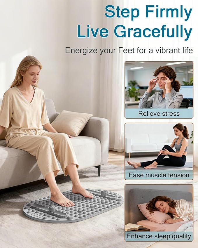 - Enhance Your Overall Well-Being: Regular use of the VIWU Foot Massager Mat can help relieve stress, ease muscle tension, and improve sleep quality. By massaging meridians and enhancing energy flow, this mat promotes total relaxation and revitalizes your feet for a vibrant life.