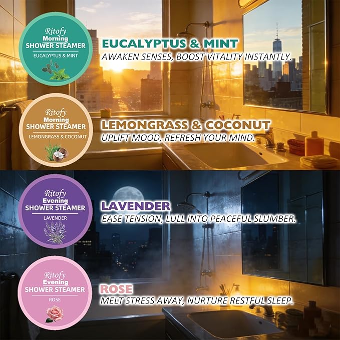 Shower Steamers Aromatherapy 12 Pack Shower Bombs with Essential Oils, Morning Refresh and Evening Relax Set, Birthday Valentines Gifts for Her Women, Self Care, Relaxation Home Spa Gift