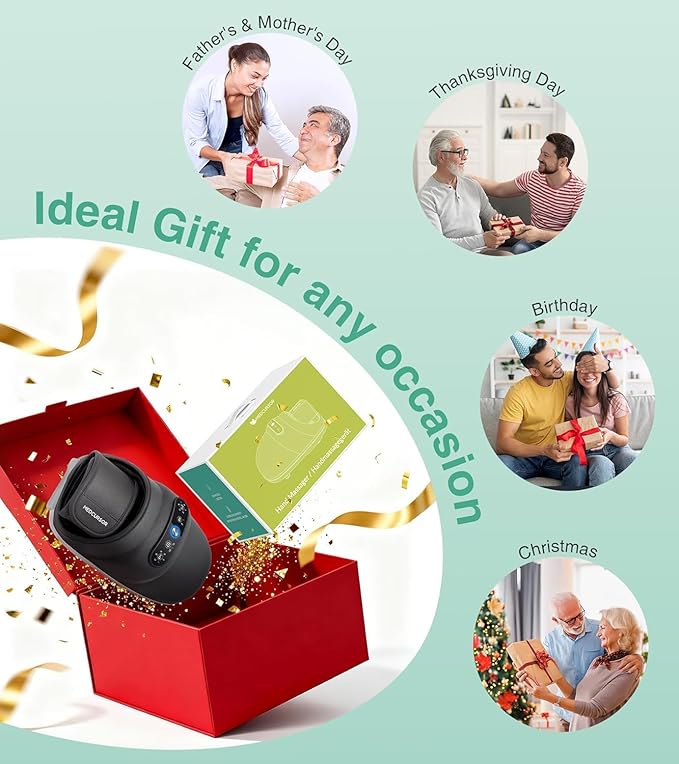 [Preferred Choice for Family] Designed with hand wellness in mind, the Medcursor Hand Massager stands out as an excellent gift for parents, spouses, and significant others. It is advisable to check hand size compatibility before purchase: recommended wrist width ≤ 3.27 in (strap 11.81 in); recommended palm width ≤ 4.72 in (internal width 5.12 in). If there are any issues with the product, you will get a 12-month warranty and friendly, timely customer support.