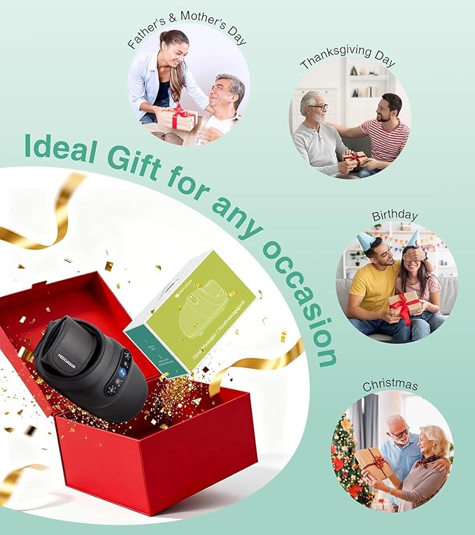 [Preferred Choice for Family] Designed with hand wellness in mind, the Medcursor Hand Massager stands out as an excellent gift for parents, spouses, and significant others. It is advisable to check hand size compatibility before purchase: recommended wrist width ≤ 3.27 in (strap 11.81 in); recommended palm width ≤ 4.72 in (internal width 5.12 in). If there are any issues with the product, you will get a 12-month warranty and friendly, timely customer support.