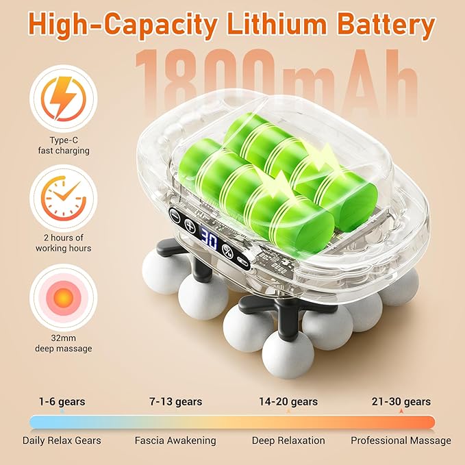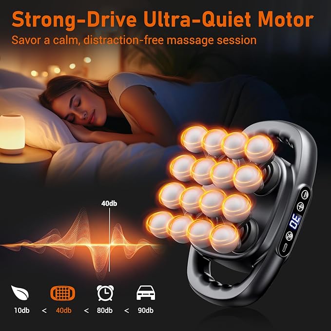 - 【Ultra-Quiet & Long Battery Life】This handheld massager operates with triple barriers of noise reduction, shock absorption, and sound insulation , great for peaceful use anywhere—home, office, or gym. Powered by a robust 1800mAh battery with Type-C fast charging, it ensures 2 hours of stable performance