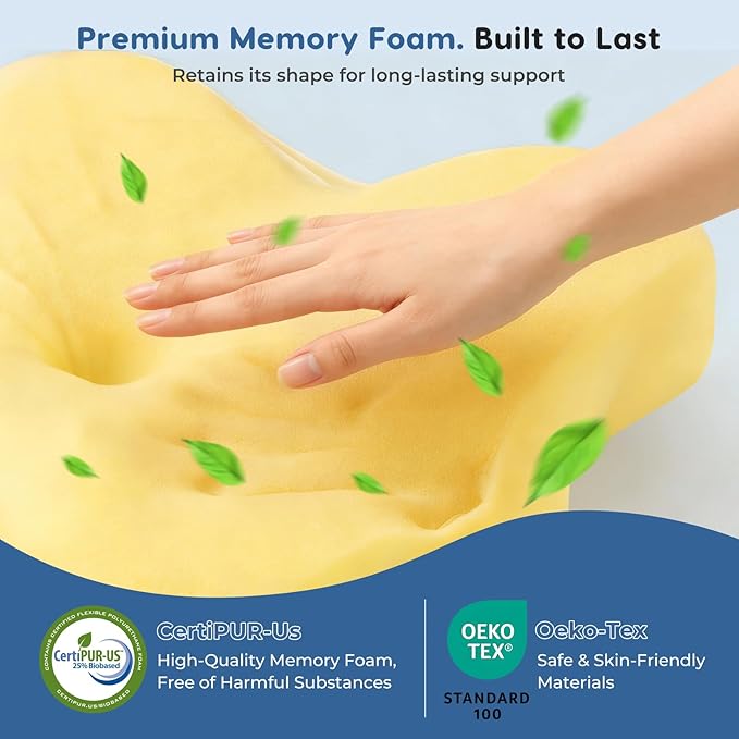 - ๐๐ซ๐๐ฆ๐ข๐ฎ๐ฆ ๐๐ฅ๐จ๐ฐ-๐๐๐๐จ๐ฎ๐ง๐ ๐๐๐ฆ๐จ๐ซ๐ฒ ๐ ๐จ๐๐ฆ: Crafted from high-density memory foam, this contour pillow adapts to the natural curve of your head and neck, offering both firm support and plush comfort. Certified by CertiPUR-US and OEKO-TEX, it is non-toxic, odorless, hypoallergenic, and durableโsafe even for sensitive skin