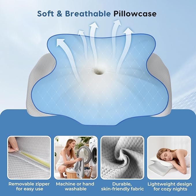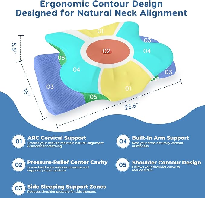 - ๐๐ซ๐ ๐จ๐ง๐จ๐ฆ๐ข๐ & ๐๐๐ญ๐๐ง๐ญ๐๐ ๐๐จ๐ง๐ญ๐จ๐ฎ๐ซ ๐๐๐ฌ๐ข๐ ๐ง: Wake up refreshed and pain-free! This cervical neck pillow features a patented ergonomic contour with a supportive hollow center that cradles the head and neck. It aligns the spine, relieves pressure, improves blood circulation, and reduces muscle tension. Designed as an orthopedic cervical pillow, it is ideal for side, back, and stomach sleepers