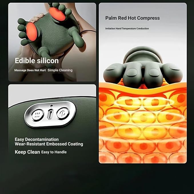 - 4D Human-like Hand Deep Massage:Two-Level Adjustable Soothing Heat,The bionic heated massager features a soothing heat function. Choose between low-temperature soothing or high-temperature deep penetration. The gentle warmth, combined with kneading massage, is delivered directly to the skin's deeper layers—ideal for tired necks and shoulders
