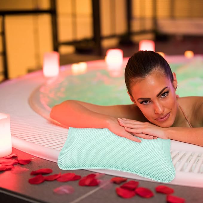 NOLITOY Bath Pillow for Tub with 3D Mesh and Suction Cups, Washable Bathroom Spa Headrest Cushion for Bathtub Relaxation and Sauna Use, Comfortable Support for Home and Hotel Random Color